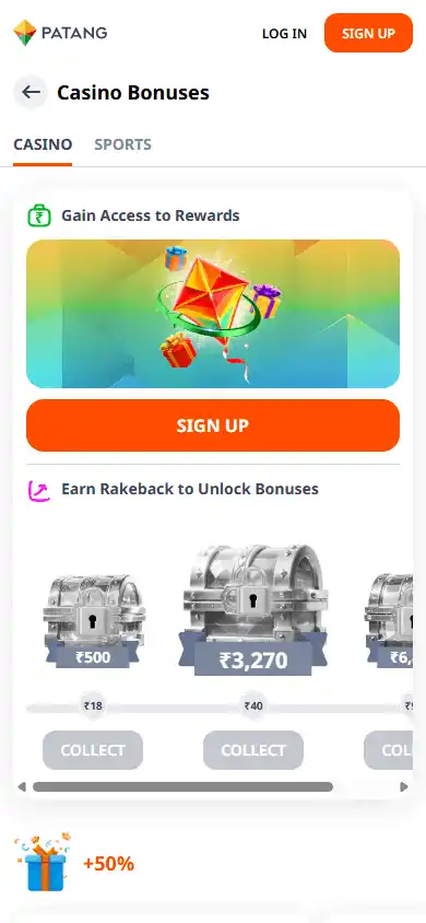 Patang Casino bonuses