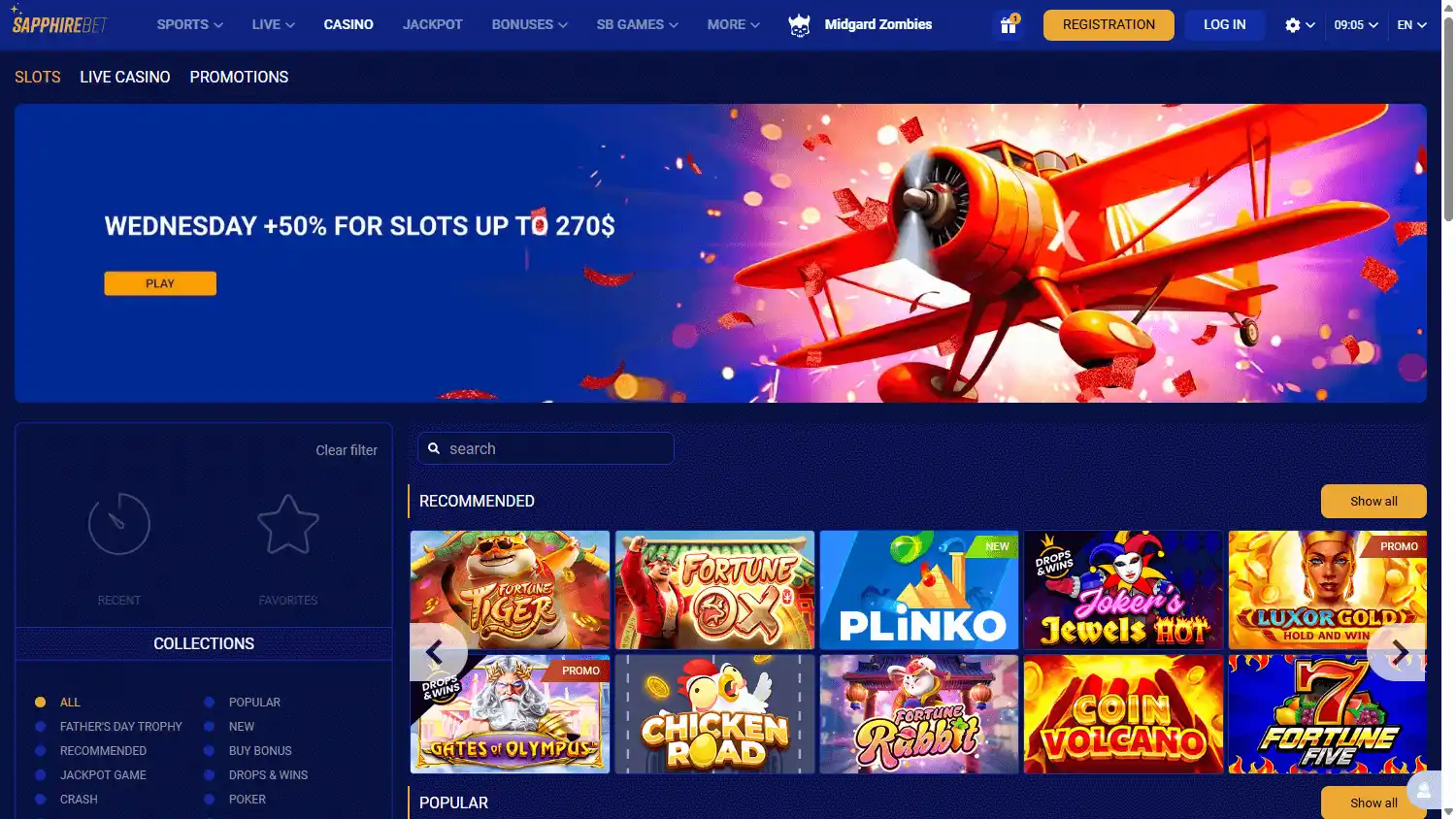 Players can enjoy these types of casino games at SapphireBet Casino: Slots, Roulette, Blackjack, Betting, Video poker, Bingo, Baccarat, Jackpot games, Live games, Craps and dice, Keno, Scratch cards, Other card games, eSports betting, Virtual sports, Other games, Crash games, Live shows, Live baccarat, Live bingo, Live blackjack, Live dice games, Other live games, Live poker, Live roulette.
