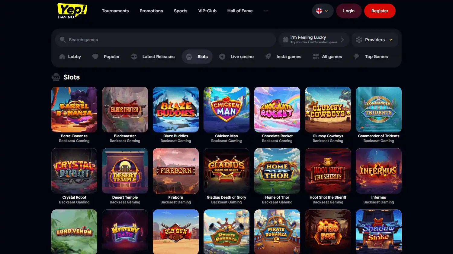Slots and casino games at Yep Casino